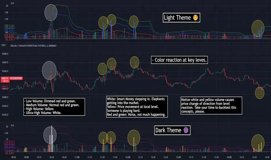 - I'll be releasing in the coming weeks a companion indicator with signals mirroring in the price chart the volume bars color changes. Stay tuned!