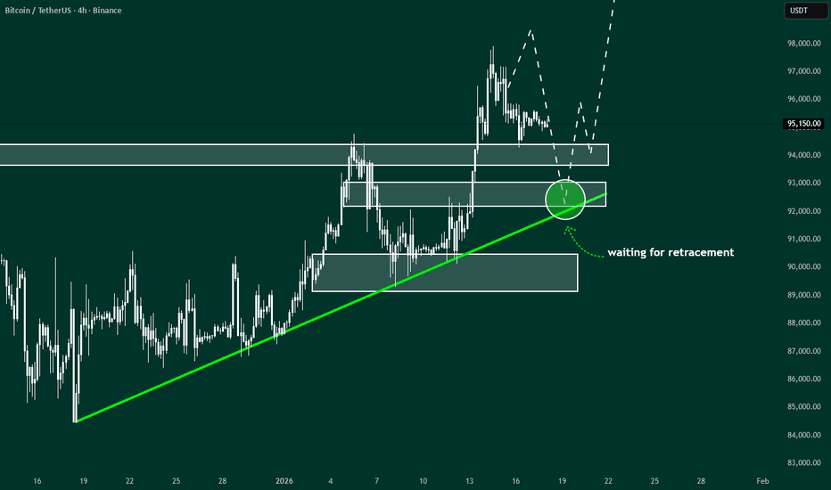 Bitcoin: This Level Offers Optimal Scenario For 100K Objective.Bitcoin is poised to break higher from the current price area BUT it is worth noting these other high probability support areas. The 92K to 93K offers the most attractive level because of the alignment of the trend line and a previous key support (order block). While a swing trade long opportunity m