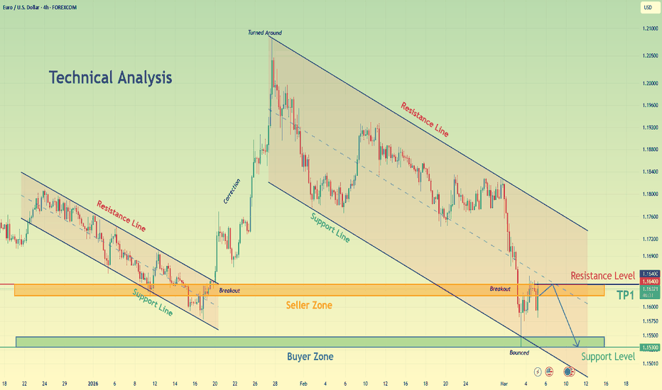 EURUSD: Descending Structure Favors Further Decline To 1.1530Hello everyone, here is my breakdown of the current EURUSD setup.
