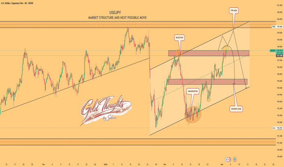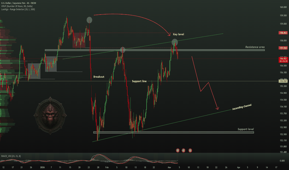 TheGrove | USDJPY SELL | Idea Trading AnalysisUSDJPY is moving on Resistance LINE and is testing the upper boundary of an ascending channel and showing signs of rejection, we may see a corrective move towards lower support AREA .