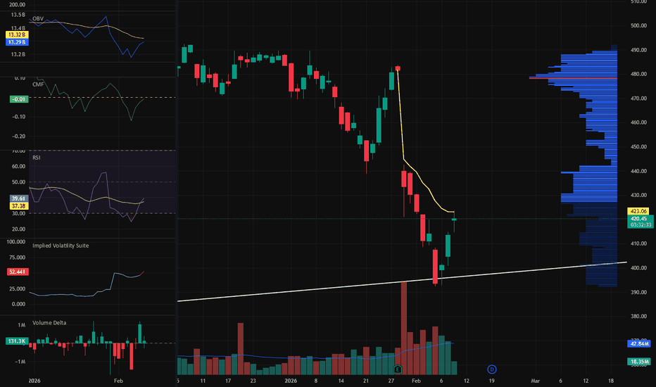 MSFT 424 Is the Real Test for BuyersJust like I mentioned earlier, 424 is the real test for buyers, and todayโs action confirms it. Buyers were much more aggressive yesterday, but once sellers showed up again at 424, the bid clearly softened. That tells me this level is being actively defended and remains the most important area for s