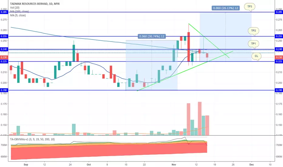 2. Chart pattern menunjuk kemungkinan untuk meloncat ke TP2 0.28.