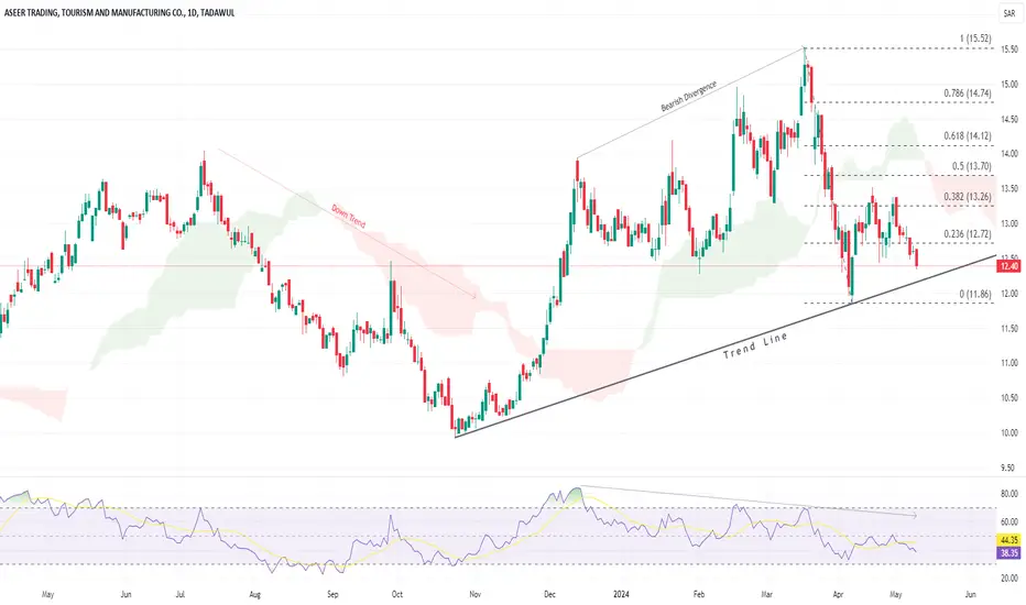 The price action is currently near the test of ascending trend line after got rejection from 15.52 level where bearish divergence with RSI is observed and closes at 12.40 in the last trading session. Upon sustaining the trend line support price can pull back towards its resistance levels of 13.50. If it breaks down ward then further bearish momentum can be seen.