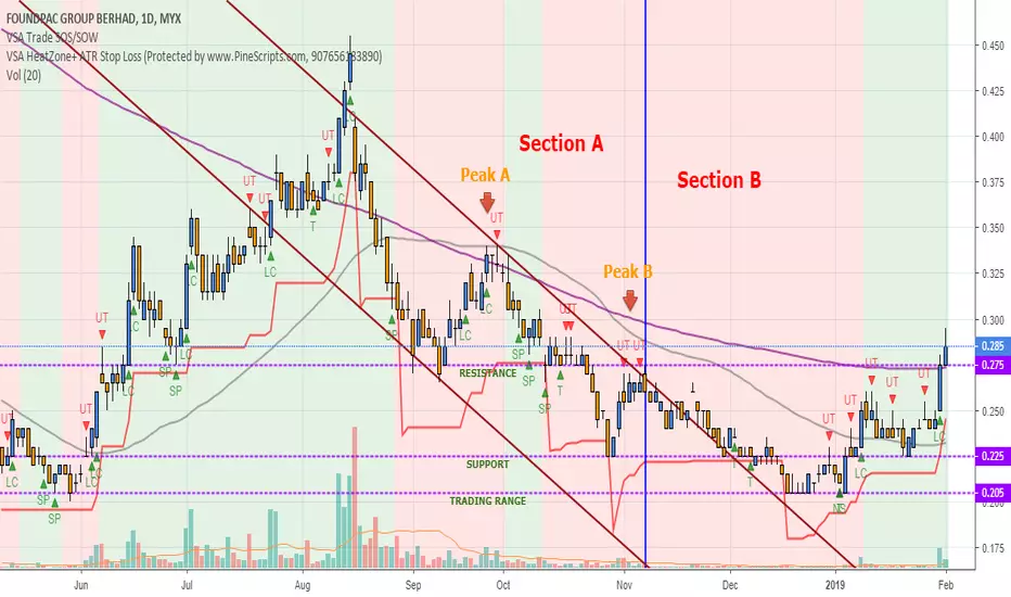- Price moved away from Downtrend and into a Trading Range (between 20.5sen - 27.5sen).