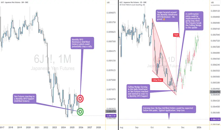 The larger (6J) and micro-sized (MJY) versions of this futures market follow the same underlying price but differ in exposure and margin scale. The standard contract generally carries a greater notional value and therefore translates each price movement into a larger monetary change. The micro contract mirrors the same structure at a reduced size, allowing traders to adjust position scaling more precisely when navigating major zones or breakout structures such as the one discussed in this case study: