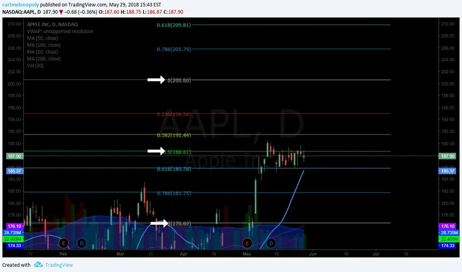 Apple support and upside move test on deck with 20 MA coming up to 185.78 support and current trade at 197.90