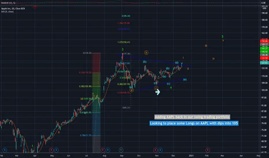 Updates on AAPL existing position. We are rallying in same degree wave (5) that might reach 167. The breakout pattern is emerging and we’re holding on our existing longs to stretch our profits on AAPL.
