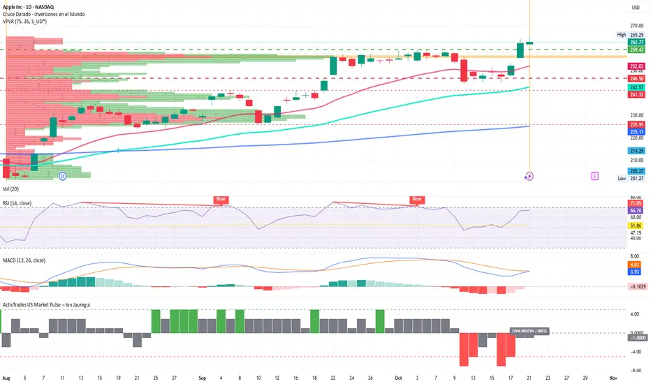 In this context, current support is around $246.50, with the next support above $241.28 near the 100-day moving average, while the previous key support is at $225.95, coinciding with the 200-day moving average. The ActivTrades US Market Pulse indicates a neutral risk balance, suggesting that these moves are largely driven by speculation around Apple.