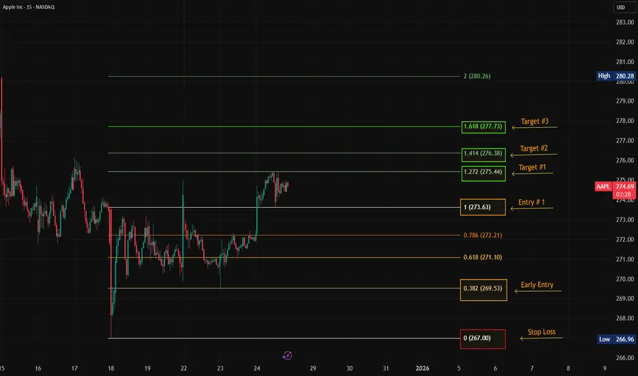 AAPL is priming up for a bigger MOVE! Price rejected the 1.272 level HARD and went back to the 1 level and now attempting the 1.272 again. It wouldn't be surprising if price wanted to go to .786 or 0.618 to find liquidity before proceeding, so keep that in mind as well.