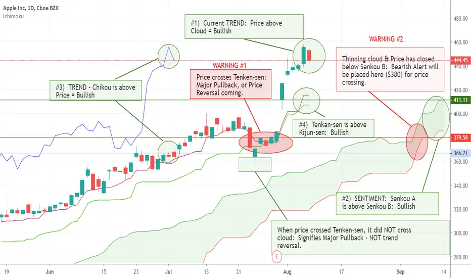 If we look at AAPL a different way, again - looking at only the technicals - we see the 4 rules of Ichimoku are telling us that this stock is currently: Bullish.