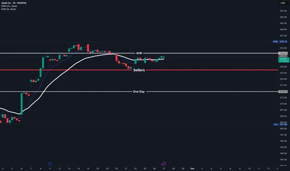 Bias: Neutral. Will react to what AAPL does at the 229–231 zone.