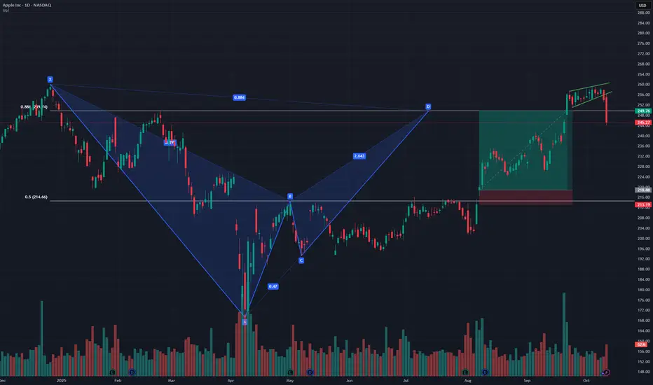 AAPL reached target (0.886 Fib level) consolidated near all time highs then broke down. will wait for further discount.