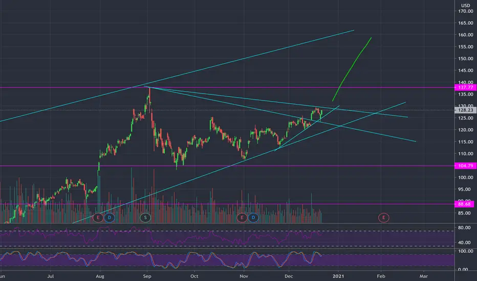 Apple broke out of key resistance and has retested the support line and has begun it's trajectory towards 160.