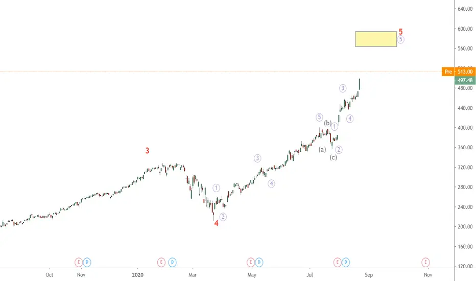 Apple is in wave 5 extension. Market sentiment is still in favor for Apple. A move higher than my designated zone will further bringing the stock higher