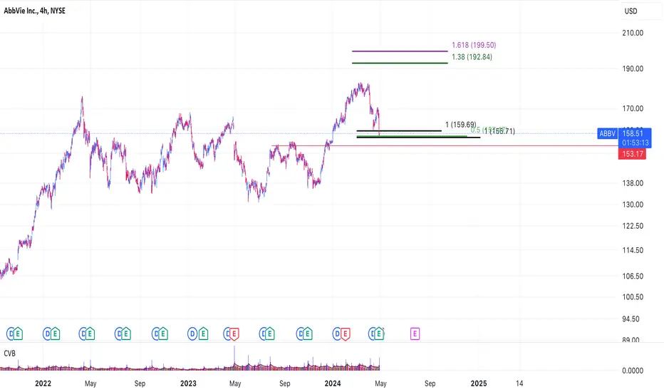 ABBV NEEDS to start holding support now if it wants to continue higher. it is buyable as of now, BUT, if we start breaking the swing high (labeled with a red line) this will be in trouble and could see a drop down to sub $120.