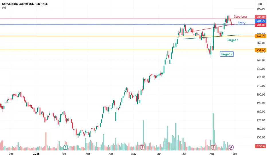 ABCAPITAL - Rising Wedge Pattern breakout (bear)