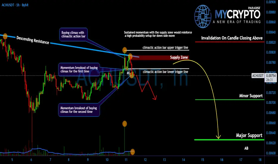 💎#ACH formed a buying climax followed by climactic action bar, strongly suggesting that institutional players are offloading and preparing for more downside move according to volume spread analysis (VSA).