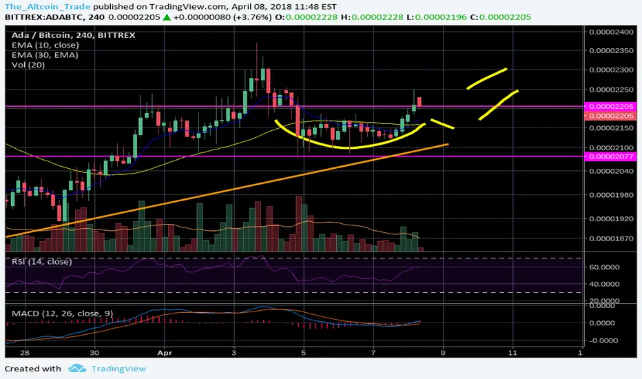 It's currently bouncing off of the 30 EMA. Keep eyes on the volume.Note
