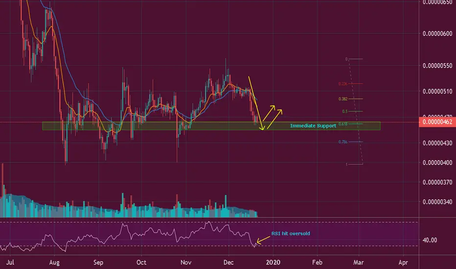 ADA sank 11% from 513 sats last Dec 16 and price is already trading just above the golden Fib 0.618.