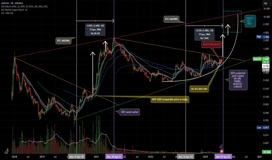 Last Cycle ADA moved from $0.12 - $1.28 once it broke out past the multi year descending resistance {ORANGE LINE}