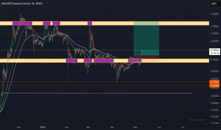 Cardano coin had failed retest and went back inside the sideways channel. As we are inside the channel again, we are looking now for upside movement here, which can send the ADA coin as high as $1.11 so this is where our target is sitting currently.