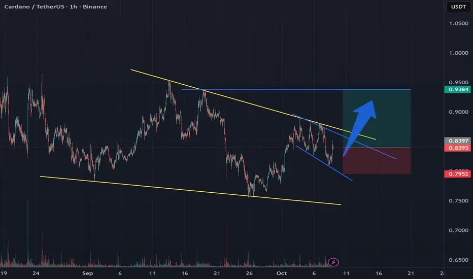ADA has formed a bullish falling wedge pattern on the global timeframe, within which a local bullish expanding falling wedge pattern has formed
