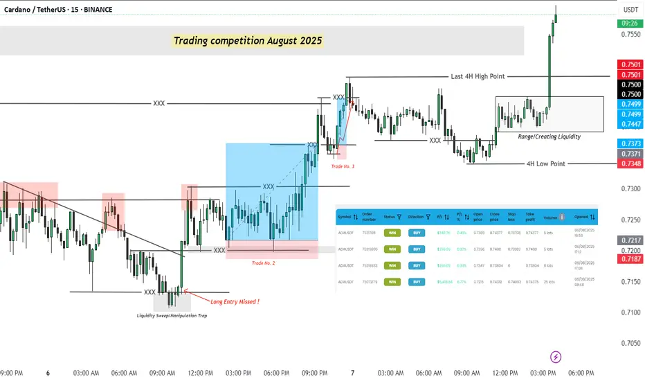 Yesterday, I executed two trades on ADA. Since then, I haven’t observed any valid psychological trade setups, so I’ve chosen to stay out of the market.
