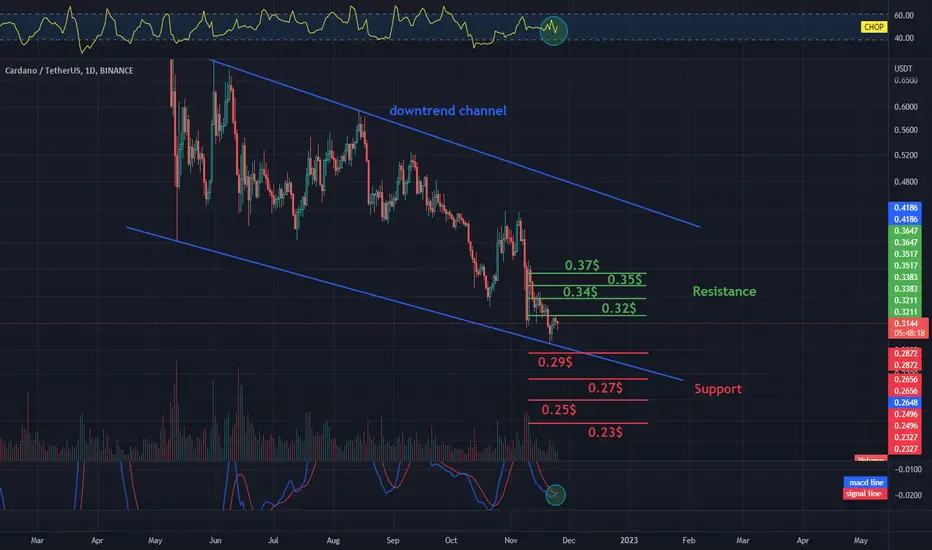 As you can see, we are at the bottom of our channel, so it's worth checking what support we have in the near future and as you can see, we can mark the first support at $0.29, if the support is broken, then the next support is $0.27, $0.25 and $0.23.