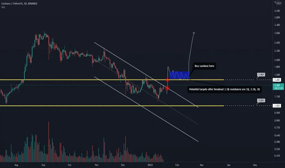 Cardano is going to break out the strong descending channel top, Also we need to see a breakout of 1.5$ to be sure of future positive movements.