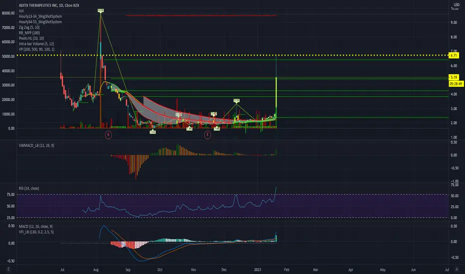 ADTX hit $6.73 providing a 180.42% Return on Investment from our initial trade alert on December 22nd, 2020 due to the release date being set for the AditxtScore Platform Immune Monitoring Platform on Feb. 1st, 2020. The initial application of the platform will be AditxtScore for Covid-19, which has been designed to provide a more complete assessment of an individual's infection and immunity status with respect to the SARS-CoV-2 virus. We're currently seeing some healthy pullback but expect this to continue to run as the stock is showing signs of reversing on the lower timeframes as of this message. Keep a close on eye on this moving forward and look forward for our Exit Strategy Alert if we see one fit for this trade at this time. #Breakout #Stocks #Trading #Investing #Alerts #StockMarket #Daily #News #Today