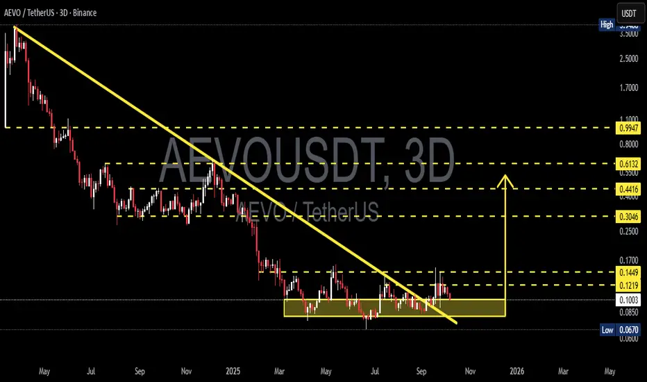 AEVO/USDT is building a large-scale accumulation structure around the 0.10–0.08 zone, indicating that the market may be nearing the end of its distribution phase.