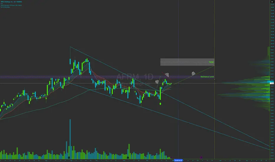 AFRM has **broken out of the descending channel** and is now **holding above reclaimed resistance (~$78)**.
