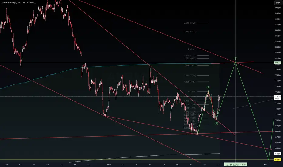 AFRM is displaying a Modified Livermore Accumulation Pattern — a deep liquidity test followed by impulsive structural recovery (Wave 1–5 formation in progress).