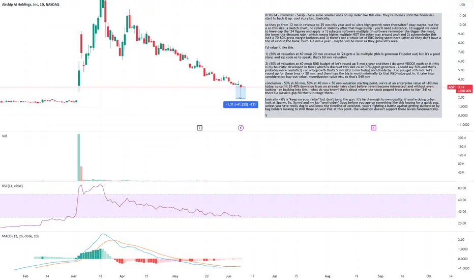 6/10/24 - vrockstar - AISP - have some smaller ones on my radar like this one. they're memes until the financials start to back it up. cool story bro, basically.