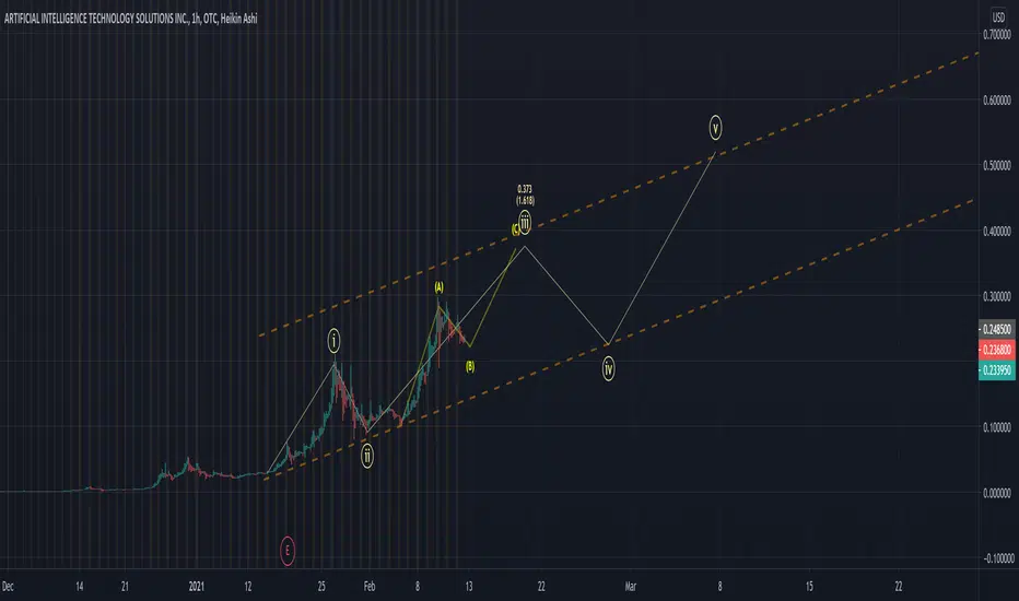 Title says it all. This is an update to my previous chart, which is still holding well with price targets. I adjusted the waves to include subwaves and added an upwards channel to track this early activity as a potential leading diagonal for longterm growth waves. I think the news about a deal with a fortune 100 company could rocket this one out of the channel, but I am going to rely on the lines and targets set for my own buy and sell points.