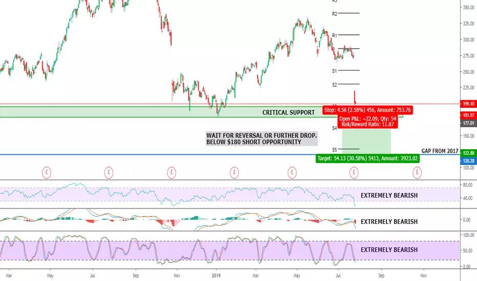 Trade setup Short below $180, support very limited to $120-$100. Its is not ubthinakle as competition and trade will continue to weigh on the stock.