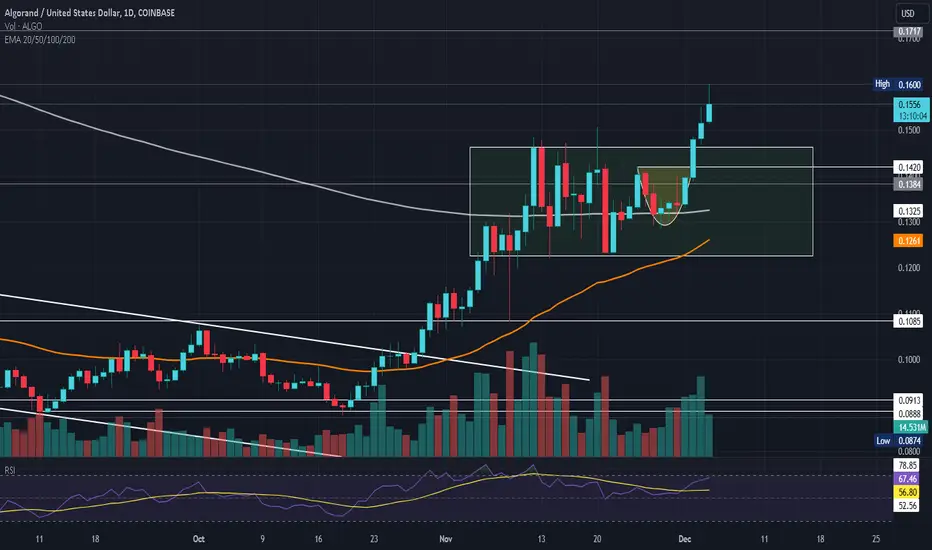 Consecutive Bullish Candles: ALGO forms four consecutive bullish candles, reinforcing the uptrend.