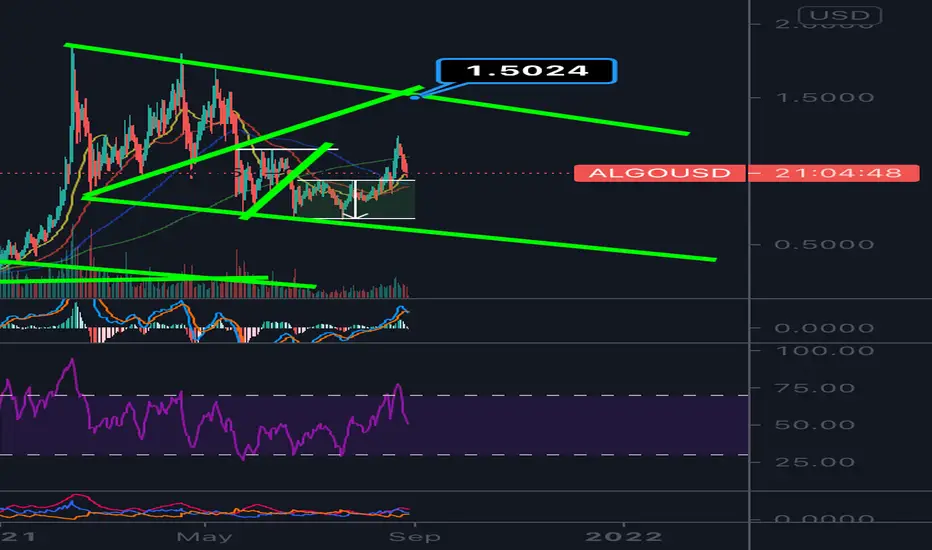 Looks like we have came back and looking to retest previous sideways trading range around this .95 cent range. We back test and hold, this will be extremely bullish. We fall and close below back in channel, further consildation will be needed. Bouncing here could
