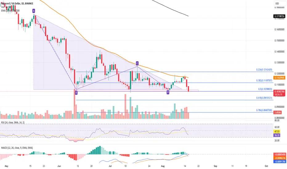 - The breakout rally failed to close above the 50-day EMA, falling 9.18% in the last 48 hours, returning to the $0.10 mark.
