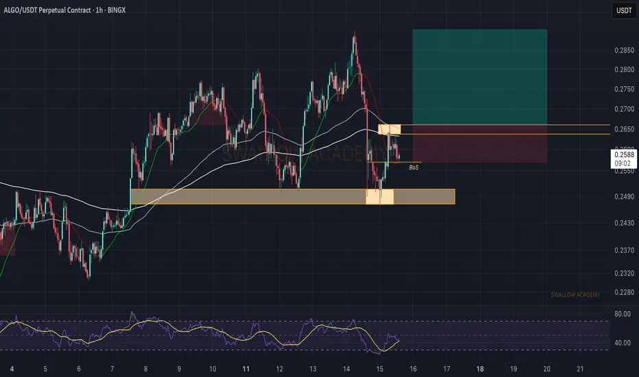 ALGO has established a decent support zone, where recently we also had a smaller BOS,,, which is a pretty choppy one, so we are looking for another BOS to form, which would give us additional confirmation for our long position.