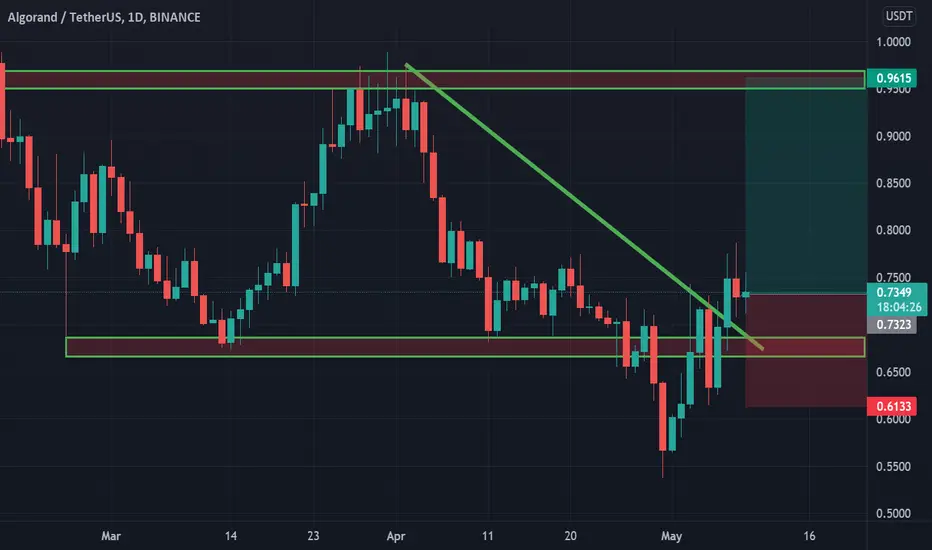 ALGO broke through the resistance level and the descending trendline. Bullish movement to resistance level at 0,9615$ is likely to happen.