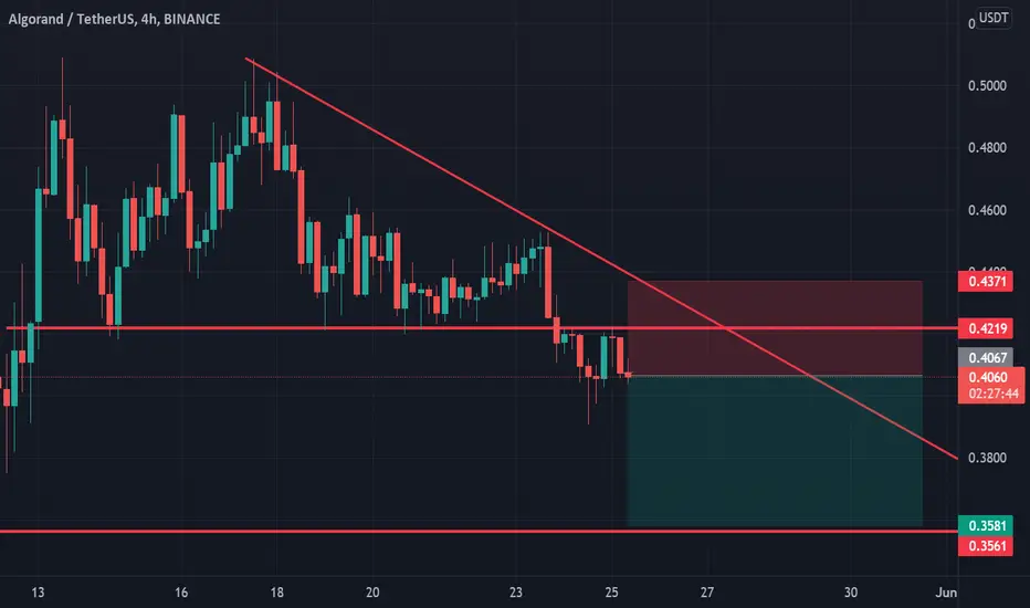ALGO is trading below its local support level. Further decline to support at recent low at 0,35 $ is likely to happen.