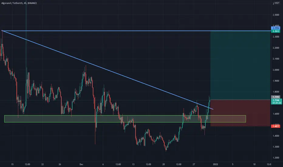 Algorand is breaking through the descending trendline. Bullish movement to resistance level at 2,45$ is likely to happen next
