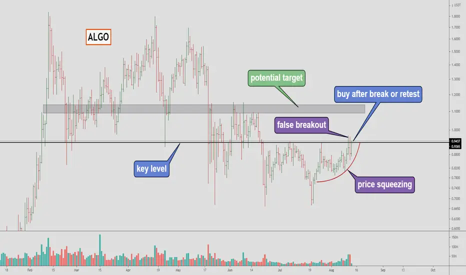 The ALGO chart shows a very interesting picture. A couple of days ago the price made a false breakout at $0.936 and then corrected by 11%. And now Algo is back to 0.936.