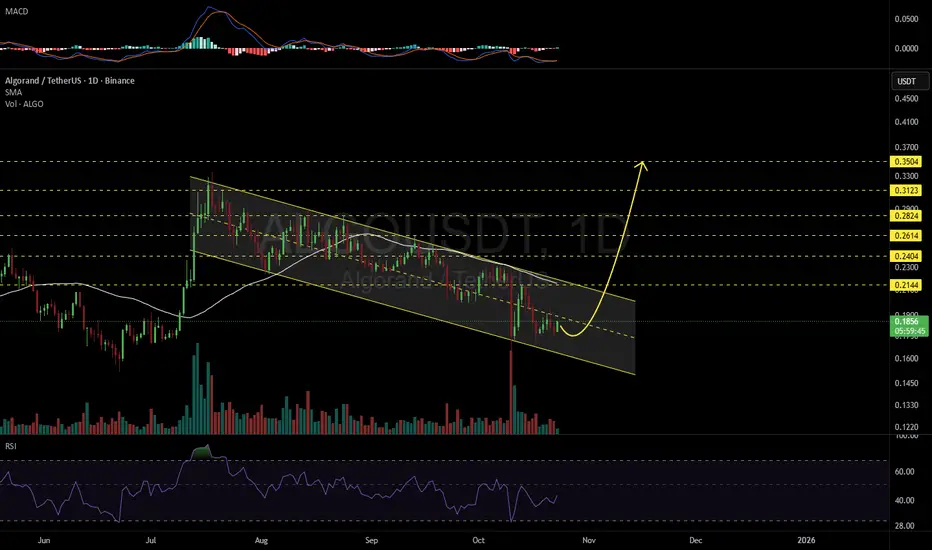 #ALGO is moving inside a descending channel on the daily chart. In case of a breakout above the channel resistance and the daily SMA50, the potential targets are: