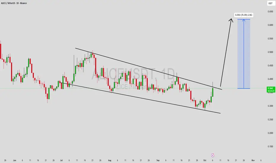 The recent market behavior around ALICEUSDT suggests accumulation by smart investors who anticipate a breakout rally. Historically, falling wedge breakouts lead to sharp upward momentum as traders recognize the shift in sentiment from bearish to bullish. With expectations of a 60% to 70% gai*, this coin could soon attract broader attention across the crypto market if price action confirms a bullish breakout above key resistance levels.