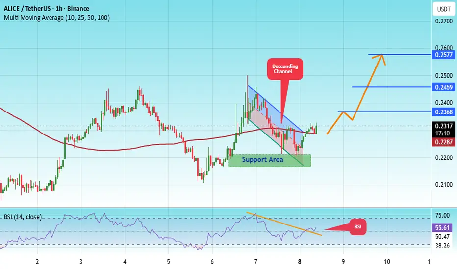 There is a key support zone in green at 0.2185. The price has bounced from this zone multiple times and is expected to bounce again.