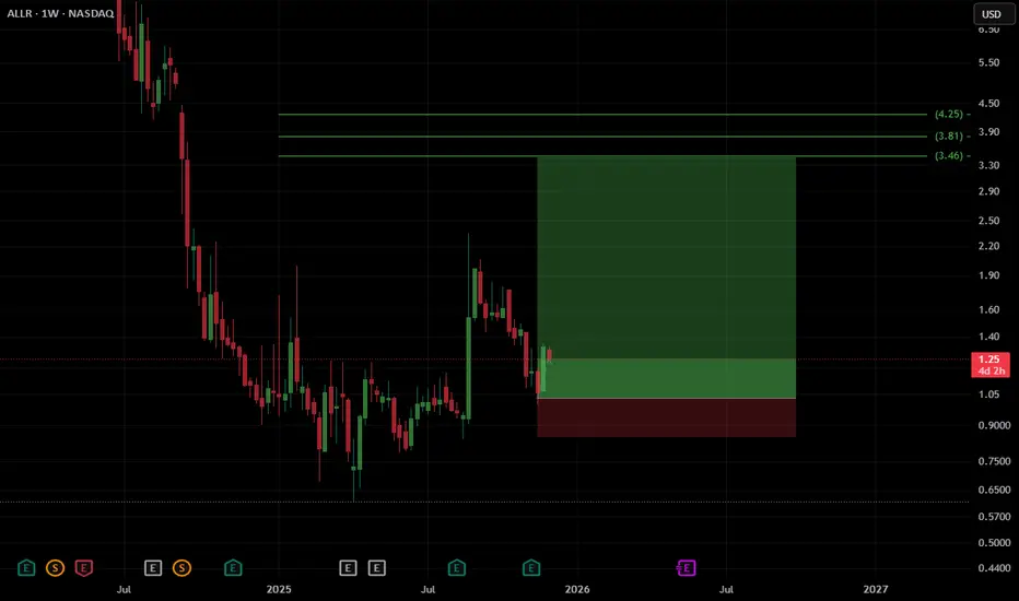 ALLR is showing signs of a potential bullish reversal after an extended consolidation phase. Price has bounced strongly from a key weekly demand zone and is now holding above a significant support level, suggesting renewed buyers interest.