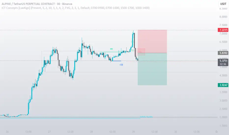 We also have an Order Block (OB) left behind before the selloff, reinforcing bearish order flow. Until price reclaims above 7.22, I’m favoring shorts with a focus on lower liquidity pools.