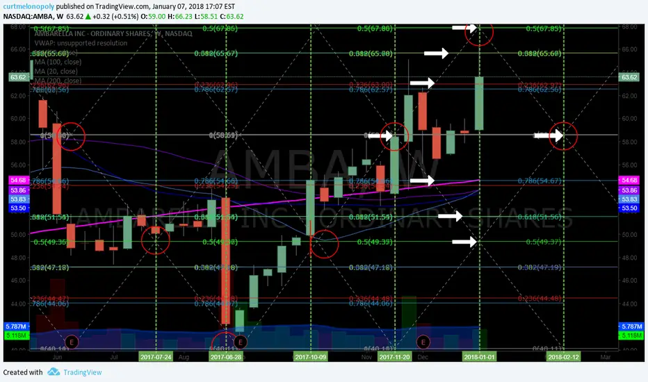 AMBA Weekly chart provides perspective on clean trade through time price cycle targets at upper lower quads #tradingedge #swingtrading